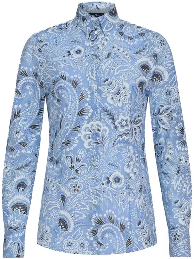 blue/white/black cotton-silk blend paisley print spread collar front button fastening long sleeves buttoned cuffs straight hem