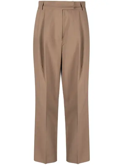 barley brown belt loops concealed front fastening two side slit pockets pleat detailing two rear jetted pockets straight leg wide leg straight hem