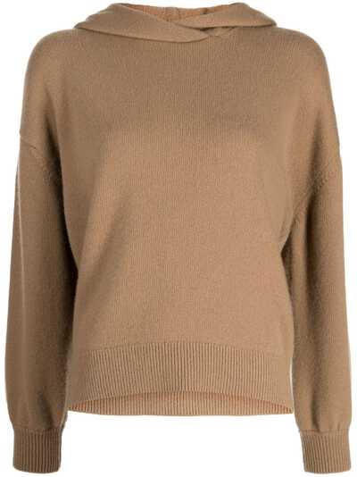 camel brown lambs wool-cashmere blend knitted construction classic hood drop shoulder long sleeves ribbed cuffs and hem straight hem
