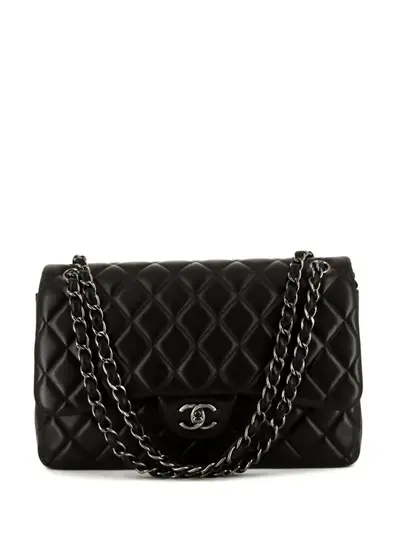 black leather diamond quilting leather and chain-link shoulder strap front flap closure signature interlocking CC turn-lock fastening main compartment rear patch pocket silver-tone hardware Condition: GOOD. This previously owned and used item is in good condition with minimal signs of use. This may include fading of material or plating and scratches.