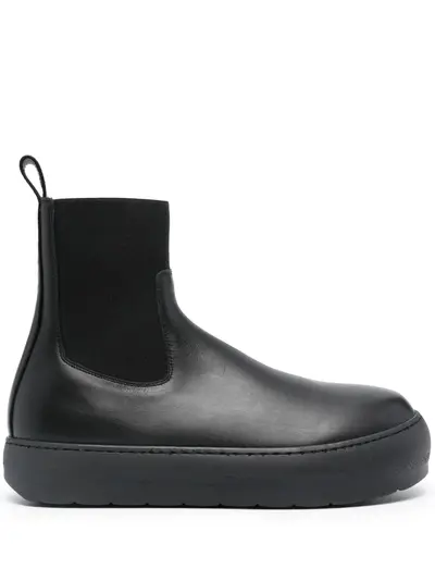 black calf leather TPU upper sock-style ankle round toe ankle-length pull-tab at the heel elasticated side panels branded insole flatform sole