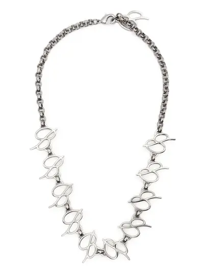 silver-tone polished finish logo lettering cable-link chain lobster claw fastening