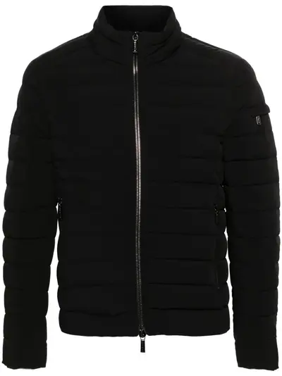 black feather down water-resistant padded design mock neck long sleeves sleeve zip pocket branded zip puller two side zip-fastening pockets internal zip-fastening pockets straight hem front two-way zip fastening