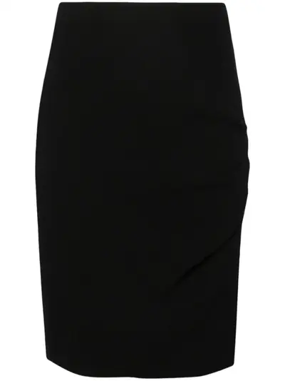 circa 1990s black wool textured finish pleat detailing pencil silhouette high waist concealed rear zip fastening side slit straight hem mid-length full lining Condition: GOOD. This previously owned and used item is in good condition with minimal signs of use. This may include fading of material or plating and scratches.