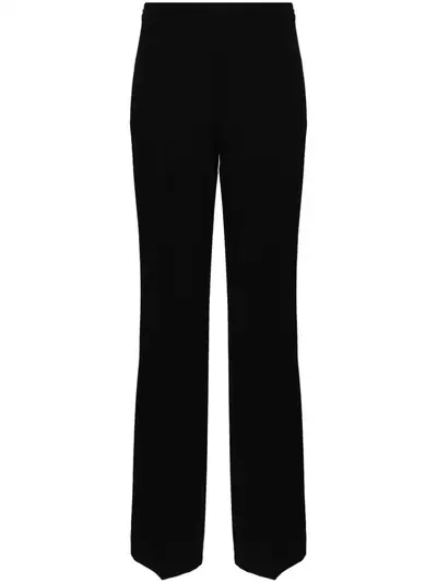 black tailored design twill weave pressed crease side zip fastening straight leg straight hem ankle-length