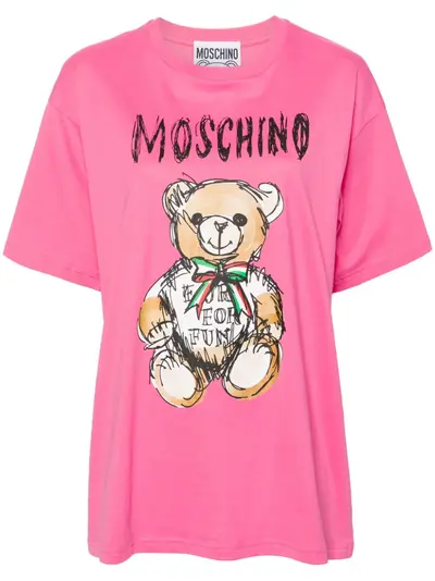 pink/multicolour cotton soft jersey signature Teddy Bear print to the front logo print to the front crew neck short sleeves straight hem