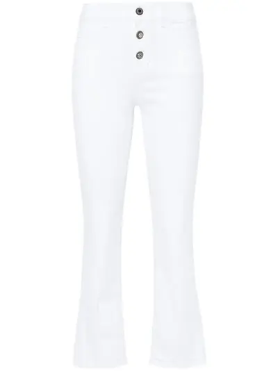 white stretch-cotton denim silver-tone logo plaque to the rear belt loops at the waist classic five-pocket design mid-rise bootcut cropped leg front button fastening