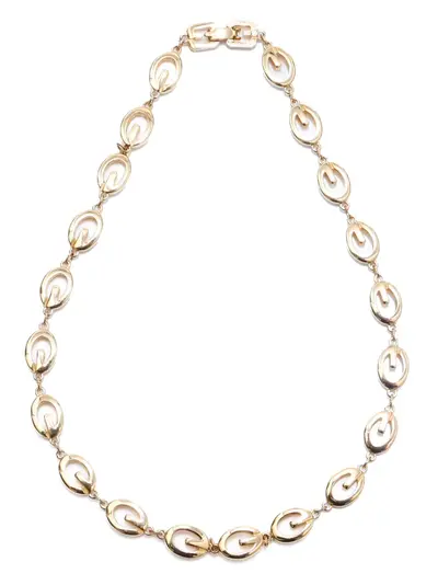 gold plated polished finish gold-tone logo plaque chain-link detailing clip-lock fastening Condition: GOOD. This previously owned and used item is in good condition with minimal signs of use. This may include fading of material or plating and scratches.
