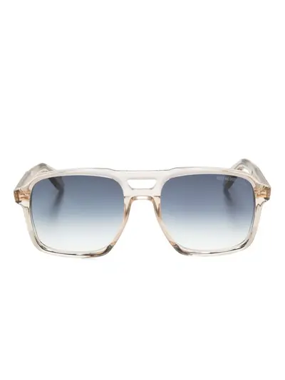 gold-tone acetate transparent design UV-protective gradient lenses double bridge logo lens decal straight arms with curved tips These glasses come with a protective case.