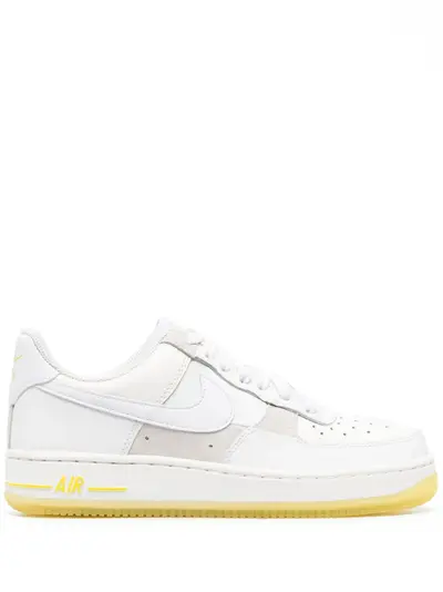 white/yellow panelled design signature Swoosh logo detail reflective detailing perforated detailing round toe front lace-up fastening branded footbed signature Air sole