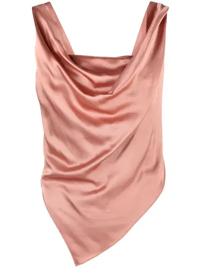 rose pink recycled polyester blend satin finish draped detailing sleeveless asymmetric design