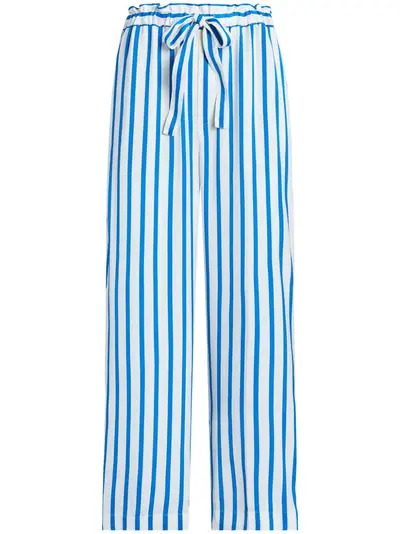 blue/white silk blend vertical stripe pattern elasticated drawstring waistband straight leg