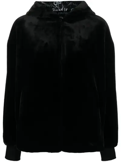 black faux-fur design all-over logo print reversible classic hood front zip fastening long sleeves ribbed cuffs two side inset pockets