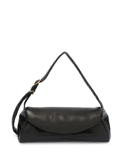 black calf leather smooth grain padded design logo print to the front tube design adjustable shoulder strap foldover top with magnetic fastening main compartment internal patch pocket debossed internal logo gold-tone hardware This piece comes complete with a protective dust bag.