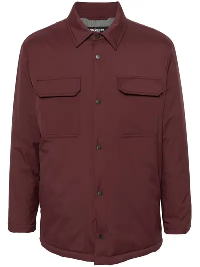 wine red classic collar front press-stud fastening drop shoulder long sleeves straight hem two chest flap pockets