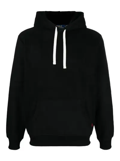 black recycled polyester blend fleece texture embroidered logo to the front drawstring hood long sleeves ribbed cuffs and hem front pouch pocket jersey lining