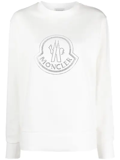 white cotton blend logo embellishment rhinestone embellishment crew neck long sleeves straight hem