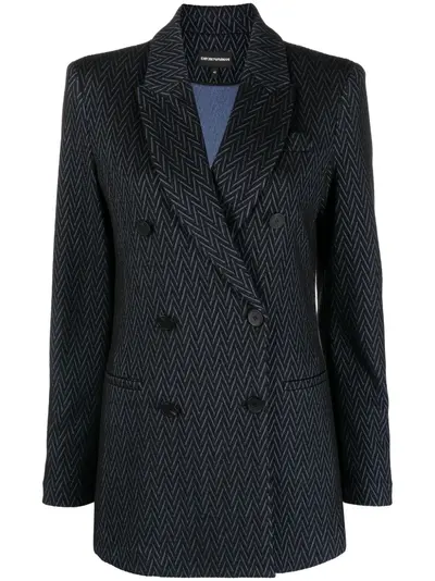 navy blue herringbone peak lapels double-breasted button fastening long sleeves buttoned cuffs chest welt pocket two front welt pockets straight hem