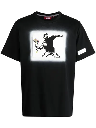 black cotton graphic print to the front logo patch at the sleeve crew neck short sleeves straight hem