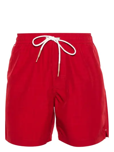 red elasticated drawstring waistband two diagonal pockets to the sides short side slits rear patch pocket metal eyelet detailing mesh lining Be mindful to try on swimwear over your own garments.