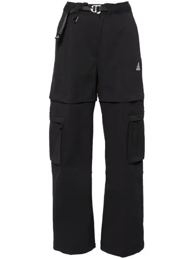 black stretch-design water-repellent signature Swoosh logo detail embroidered logo to the front belt loops front buckle fastening front press-stud and zip fastening two side zip-fastening pockets two side cargo pockets rear stud-fastening pocket detachable legs straight leg