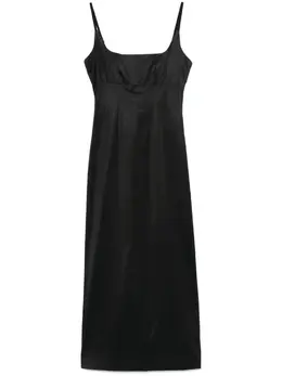 black knitted construction square neck slip-on style sleeveless pleated skirt mid-length straight hem