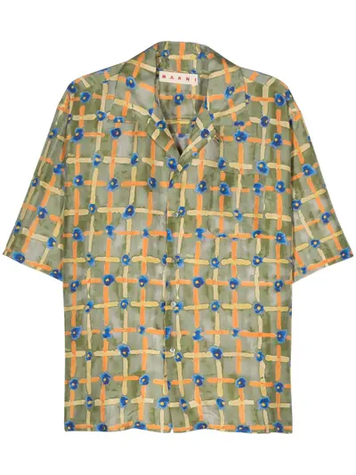 green, multicolour silk satin finish all-over graphic print notched collar short sleeves straight hem front button fastening