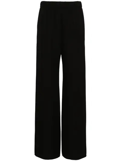 Valentino Ready To Wear black silk crepe texture elasticated waistband two side inset pockets two rear welt pockets wide leg The full look includes Valentino Garavani accessories.