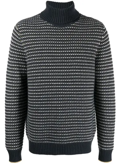 ash grey/dark blue organic cashmere ribbed detailing bird's eye knit roll neck long sleeves straight hem