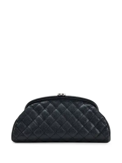 black calfskin top clasp fastening signature interlocking CC logo silver-tone hardware diamond quilting main compartment internal zip-fastening pocket internal logo stamp Condition: GOOD. This previously owned and used item is in good condition with minimal signs of use. This may include fading of material or plating and scratches.