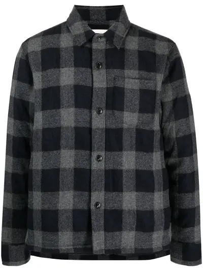 ash grey/black virgin wool gingham check pattern buttoned-cuff sleeves classic collar front button fastening long sleeves chest patch pocket straight hem