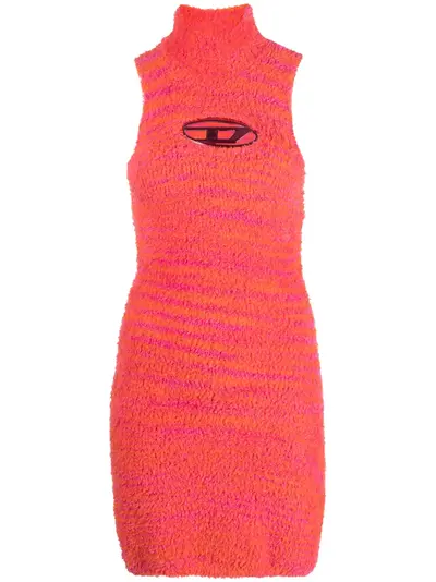 pink/carrot orange towelling finish tonal logo plaque cut-out detailing high neck sleeveless straight hem thigh-length