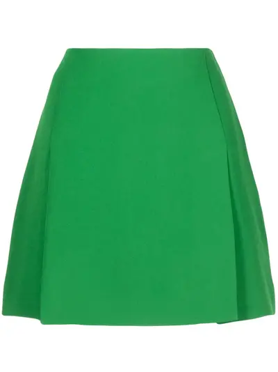 emerald green silk tonal stitching high-waisted side slits straight hem thigh-length