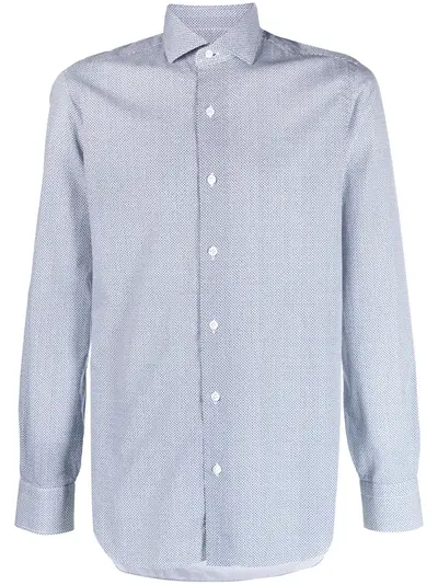 light blue all-over graphic print front button fastening classic collar long sleeves curved hem