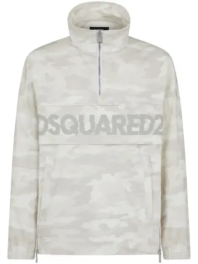 light grey stretch-cotton camouflage print logo print to the front funnel neck half front zip fastening long sleeves elasticated cuffs two side welt pockets short side zip fastening straight hem
