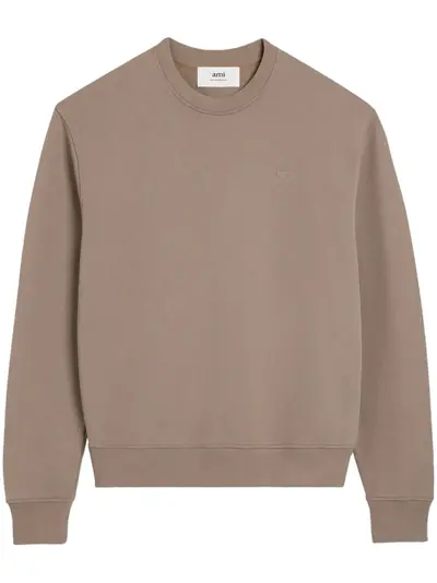 taupe brown stretch organic cotton signature Ami de Coeur monogram motif ribbed trim crew neck drop shoulder long sleeves straight hem When buying this unisex item, keep in mind that it is graded in standard men's sizing.