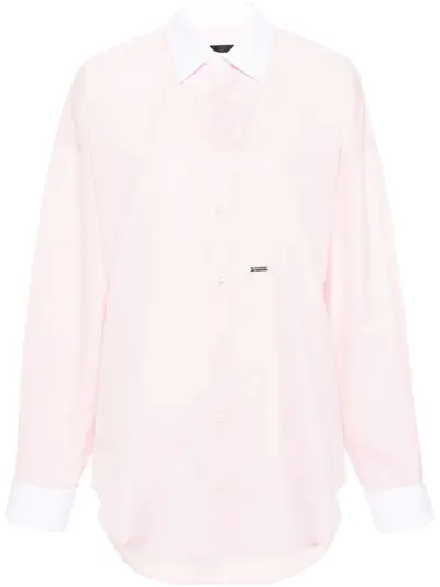pink/white cotton box-pleat detail silver-tone logo plaque contrasting pointed flat collar front button fastening drop shoulder long sleeves with buttoned cuffs curved hem