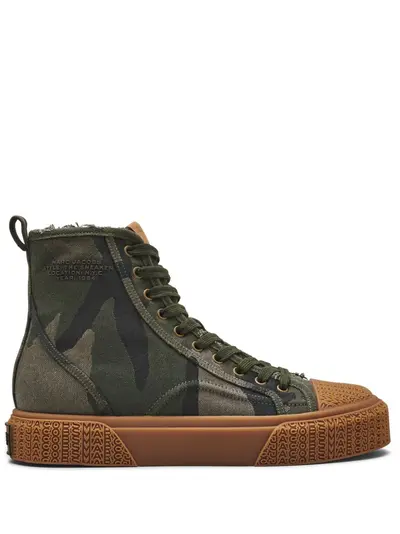 dark green cotton canvas camouflage print embossed logo to the side front lace-up fastening round toe rubber sole