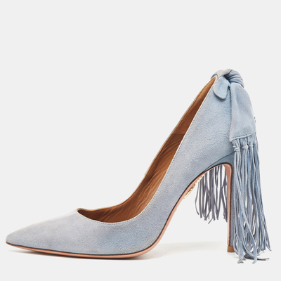 Aquazzura Grey Suede Bow Fringe Pumps Size 35 937022 (lpn25272678)
