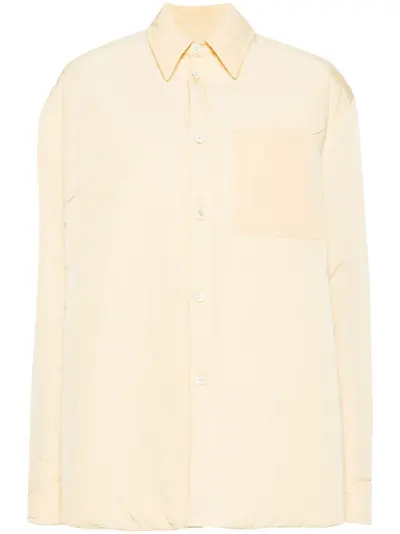 sherbet yellow crinkled finish padded design classic collar front button fastening drop shoulder long sleeves with buttoned cuffs chest patch pocket straight hem full lining