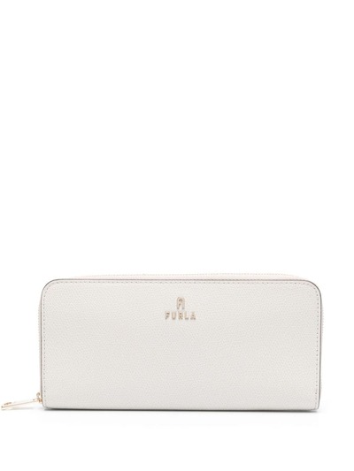 white calf leather grained texture gold-tone logo lettering gold-tone hardware all-around zip fastening partitioned compartment internal zip-fastening pocket internal card slots