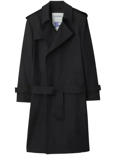 black silk blend double-breasted button fastening notched lapels long sleeves belted cuffs detachable waist belt slip pockets to the sides straight hem