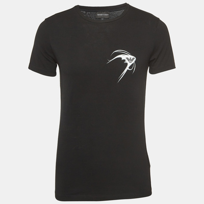 Emporio Armani Black Logo Print Cotton Crew Neck T-Shirt S 937538 - 1