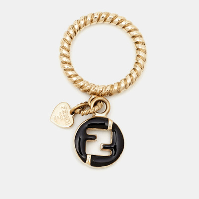 Fendi FF Black Enamel Charm Gold Tone Ring Size 56 937603 - 1
