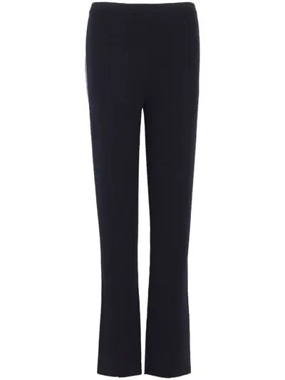 navy blue knitted construction vertical seamed cropped leg elasticated waistband