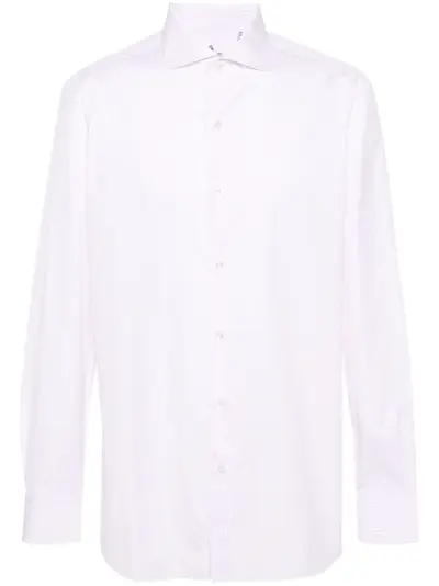 pink/white cotton poplin texture classic collar long sleeves with buttoned cuffs internal logo tag curved hem front button fastening