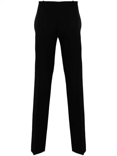 black wool tailored cut mid-rise concealed front button, hook and zip fastening belt loops two side inset pockets two rear button-fastening jetted pockets pressed crease
