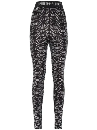 black stretch-cotton jersey texture rhinestone embellishment monogram pattern logo waistband high waist super-skinny cut