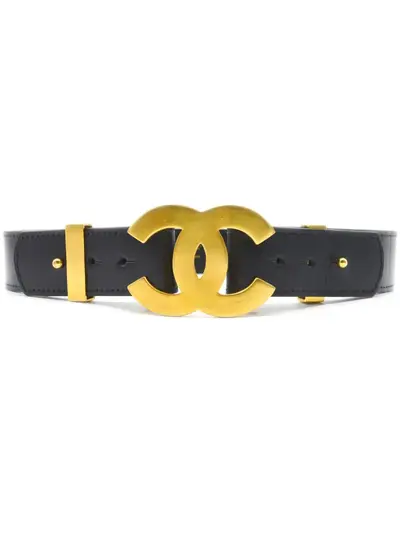 circa 1996 black calf leather signature interlocking CC logo buckle fastening punched holes adjustable fit Condition: GOOD. This previously owned and used item is in good condition with minimal signs of use. This may include fading of material or plating and scratches.