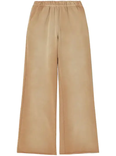sand beige organic cotton fleece texture wide leg elasticated waistband two side slash pockets rear patch pocket raw-cut hem